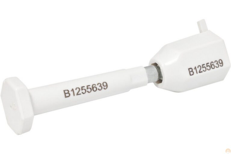 Изделие выполнено в виде стального штифта, запаянного в корпус из АВС пластика. Для опломбирования объекта вам достаточно продеть стержень в проушины и замкнуть его с помощью тела (второй отрывной части корпуса). Дополнительные инструменты при этом не понадобятся.