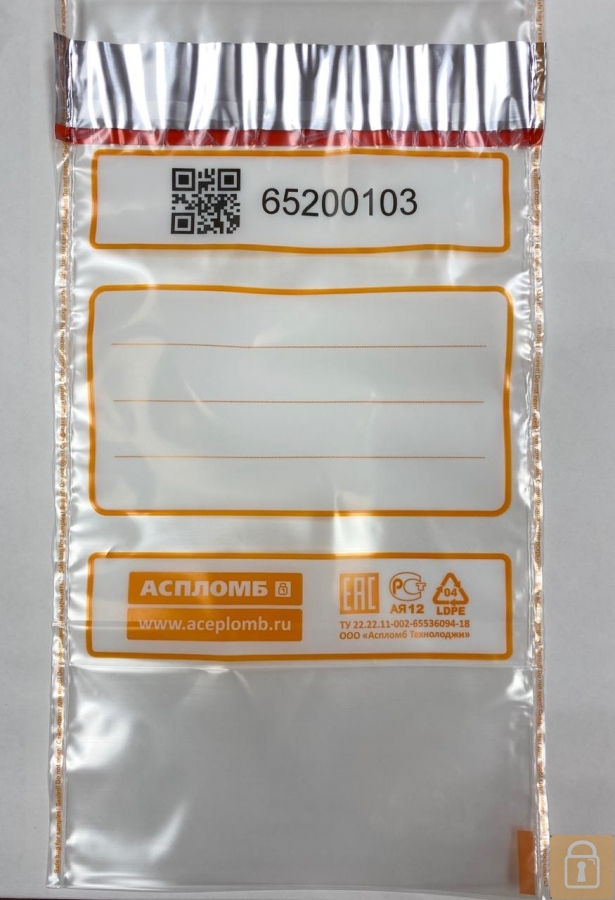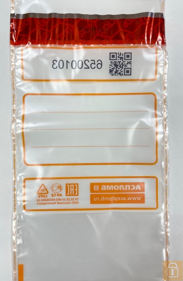 Сейф-пакет, формат 173*360 мм — удобное решение для пломбирования бутылок, канистр с пробами объемом до 1 л.
