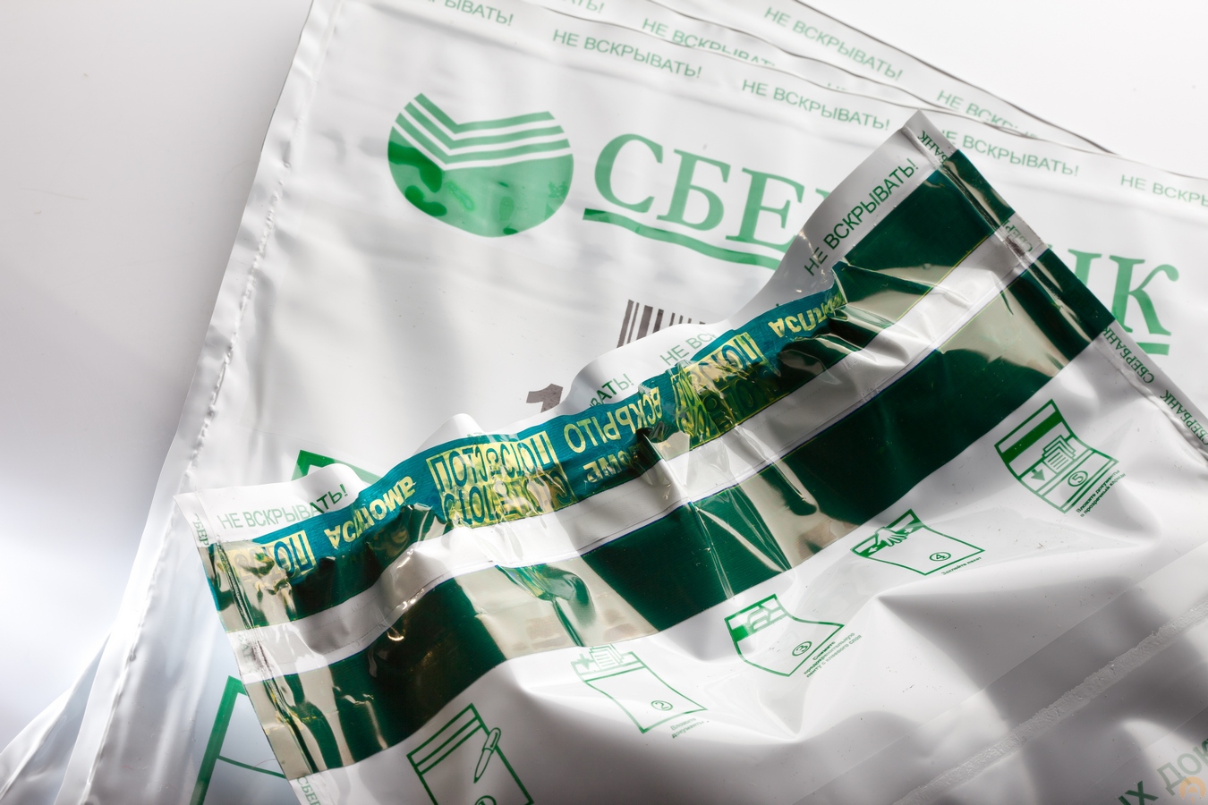 Изделие представляет собой пакет из трехслойного полиэтилена повышенной прочности, который запечатывается специальной клейкой сейф-лентой. Попытка вскрытия такого пакета приводит к появлению предупреждающей надписи «ВСКРЫТО».