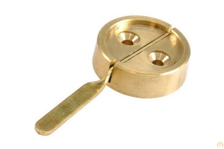 Конструкция представляет собой чашку, внешним диаметром 28мм, внутренним – 26мм, с запирающей частью в виде откидного плоского стержня. Чашка устройства оснащена двумя отверстиями, диаметром 3мм, предназначенными для установки устройства на полотно дверцы или на короб дверного проема.